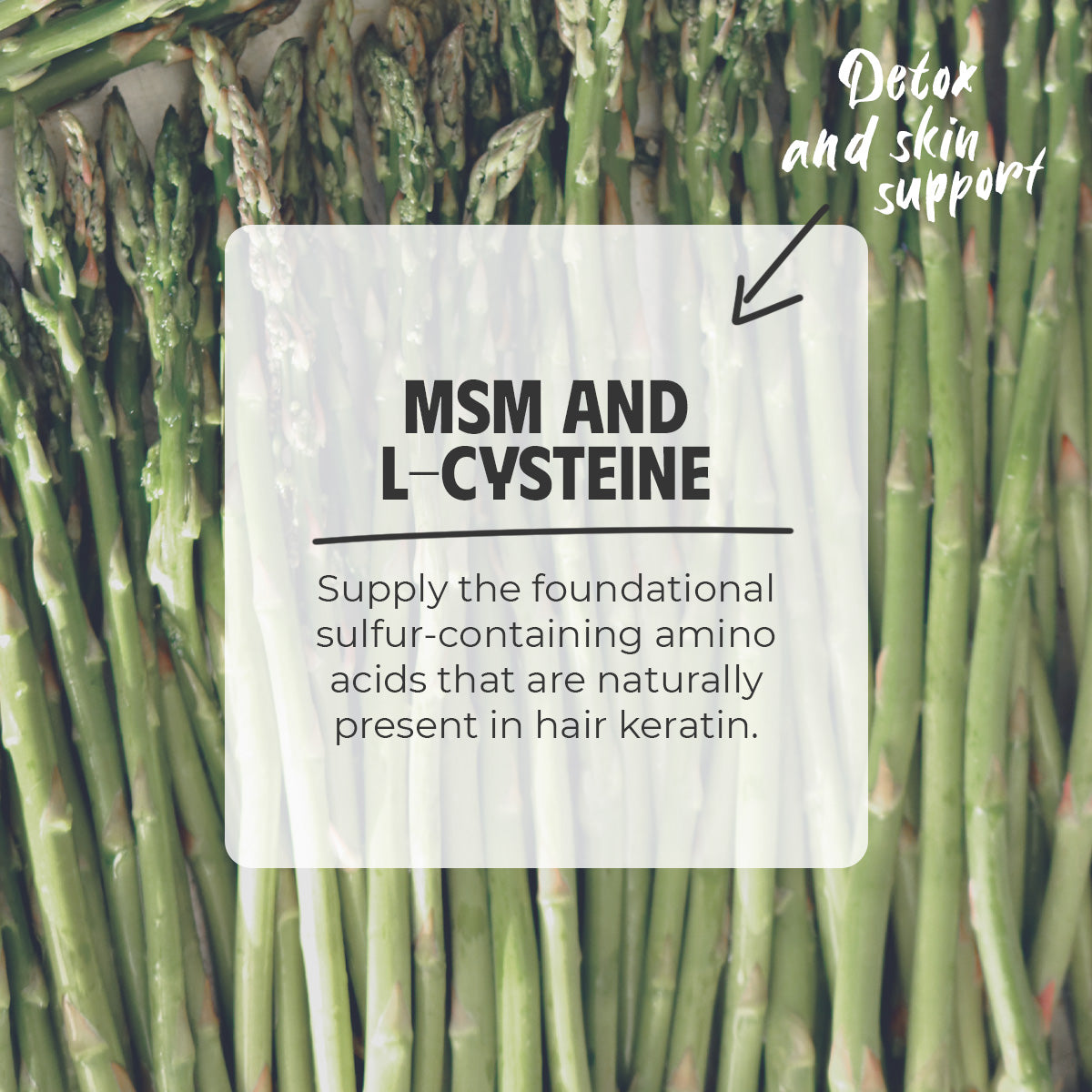 - Structural Architecture. Formulated with high-purity MSM and L-Cysteine, supplying the foundational sulfur-containing amino acids that are naturally present in hair keratin.